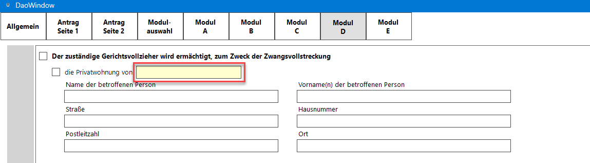Soll die Durchsuchung für Räumlichkeiten beantragt werden, die bereits in einer Adresse hinterlegt wurden, wie die Privatanschrift oder die Geschäftsräume einer Firma, kann nunmehr über die Adresseingabe die jeweilige Adressnummer gewählt werden und die Daten werden automatisch aus der Adresse in die Formularfelder übernommen: